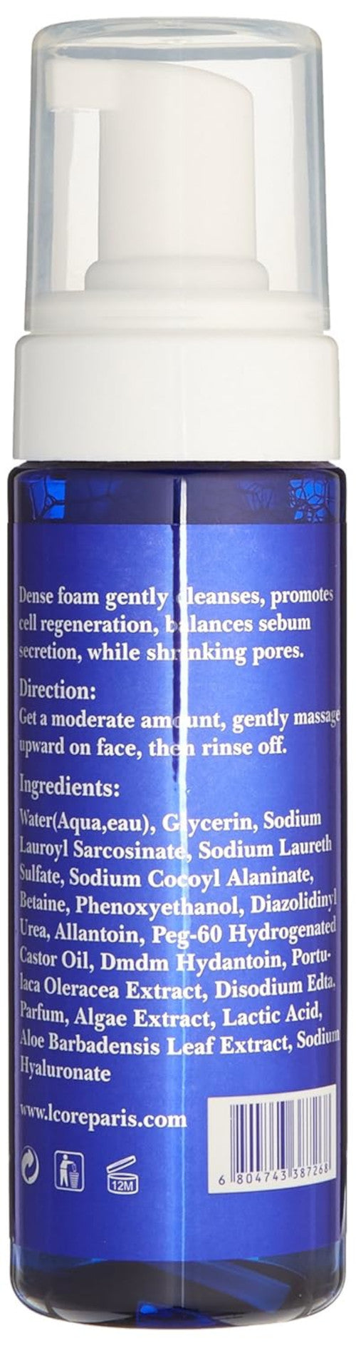 L'core paris Mousse de limpieza facial para todo tipo de piel, limpia a fondo y deja la piel suave, suave y fresca, 6.08 fl. onz.
