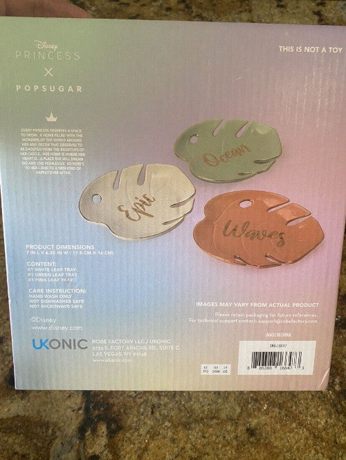 Disney Princess x POPSUGAR Moana Trinket Tray Set – 3-Piece Ceramic Leaf Dishes “Epic Ocean Waves” – Jewelry & Key Holders